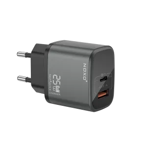 شارژر دیواری 25 وات نوکسو مدل CHN-P-1 با 2 پورت USB-C و USB-A، پشتیبانی از PD و QC3.0، فناوری GaN
