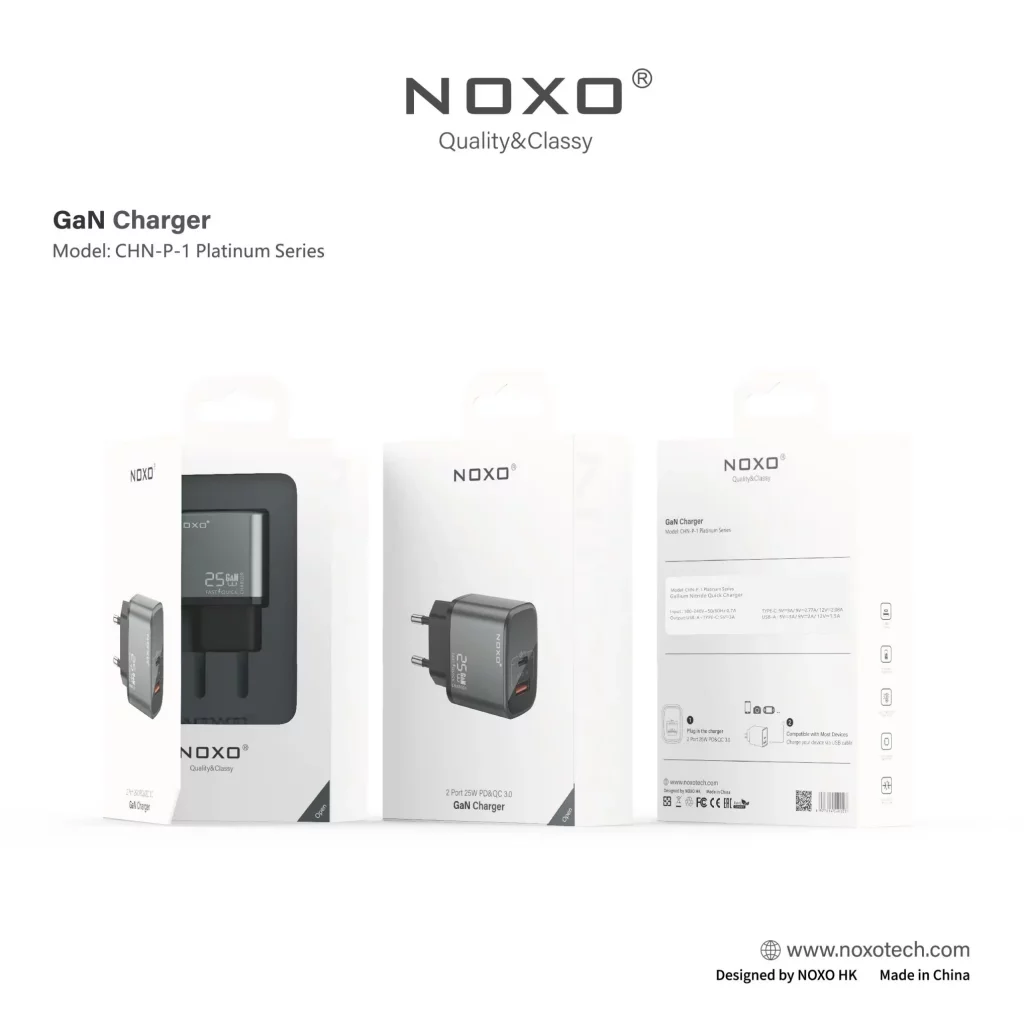 شارژر دیواری نوکسو مدل CHN-P-1 با فناوری GaN و پشتیبانی از PD و QC3.0، تمامی دستگاههای شما را سریع و ایمن شارژ میکند.