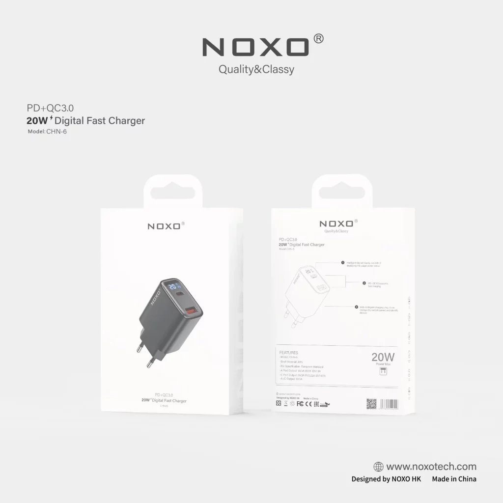 شارژر دیواری ۲۰ وات نوکسو مدل CHN-6 با ۲ پورت (USB-A + USB-C) و پشتیبانی از Power Delivery (PD) و Quick Charge 3.0 (QC3.0) طراحی شده تا دستگاههای شما را سریع و ایمن شارژ کند. این شارژر مناسب گوشیهای هوشمند، تبلت و دیگر گجتها است و امکان شارژ همزمان دو دستگاه را فراهم میکند.