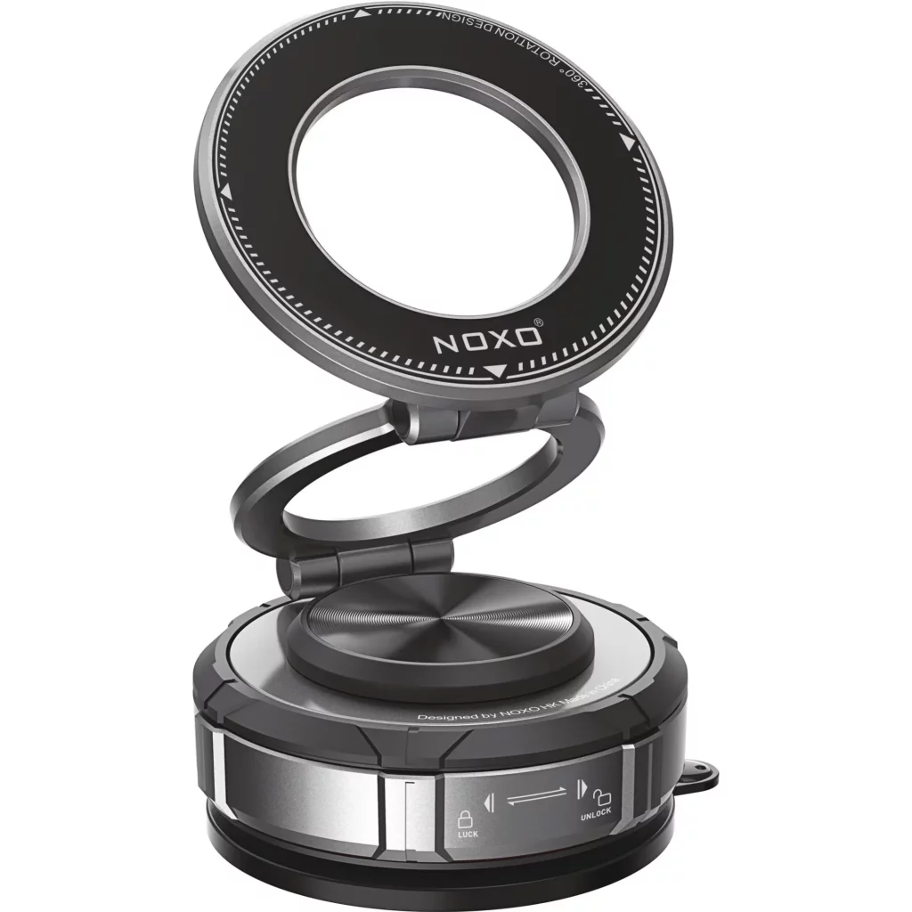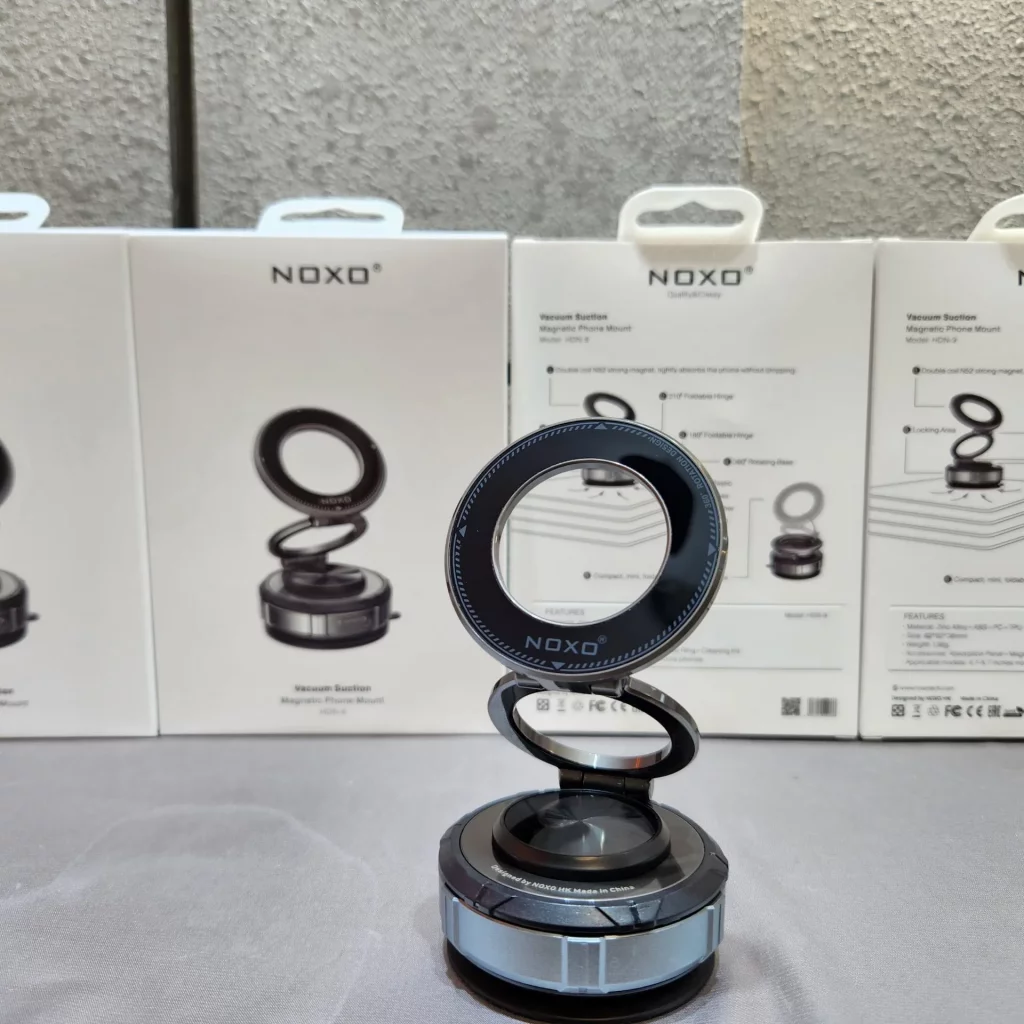 هولدر موبایل نوکسو مدل HDN-9 یک پایه نگهدارنده مغناطیسی با طراحی مکنده وکیوم است که گوشی شما را به صورت پایدار و ایمن نگه میدارد. این محصول با استفاده از ترکیب متریال Zinc Alloy + ABS + PC + TPU ساخته شده و علاوه بر مقاومت بالا، وزن سبک (136 گرم) و طراحی جمعوجور دارد.