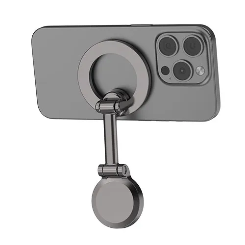 پایه هولدر قابلیت چرخش 360 درجه و 180 درجه بالا و پایین دارد تا بتوانید گوشی را در هر زاویهای آزادانه تنظیم کنید. هولدر بسیار کمحجم، کوچک و قابل تا شدن است و فضای زیادی اشغال نمیکند.