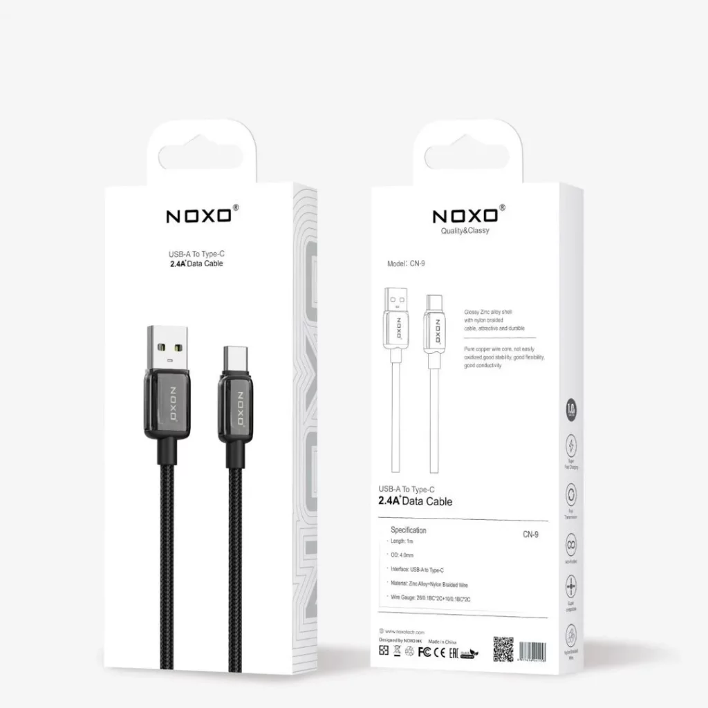 کابل نوکسو CN-9 با طراحی مقاوم و شیک، مجهز به کانکتور USB-A به Type-C و طول ۱ متر است. بدنهی ساختهشده از آلیاژ روی براق در کنار روکش نایلونی بافتهشده دوام و طول عمر بالایی برای کابل فراهم میکند.