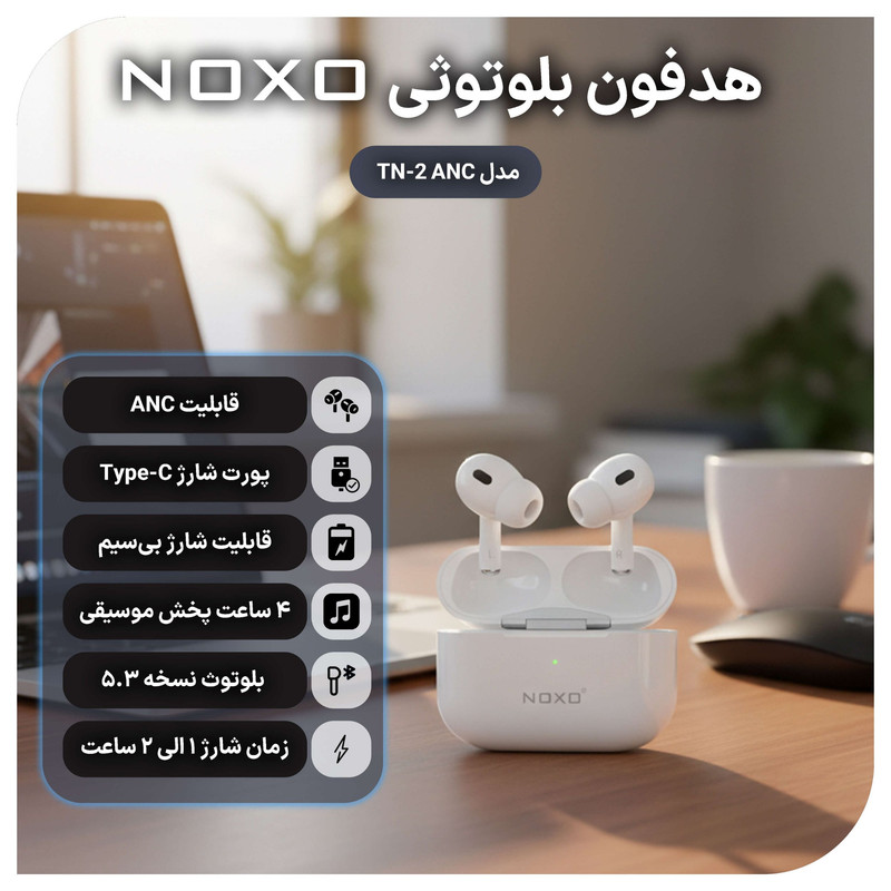 سایر مشخصات | هندزفری بلوتوثی نوکسو TN-2 با بلوتوث 5.3 به سرعت و بدون تاخیر به انواع دستگاهها متصل میشود؛ از آیفونهای جدید (iPhone 17 / 16 / 15 / 14 / 13 / 12 / 11) گرفته تا گوشیهای اندروید مثل سامسونگ، شیائومی و سایر برندها. همچنین با لپتاپ، تبلت و هر دستگاه مجهز به بلوتوث کاملاً سازگار است.ویژگیهای شاخص این مدل شامل حذف نویز فعال (ANC) برای تجربهای شفاف، کیفیت صدای فوقالعاده با باس قدرتمند، پشتیبانی از شارژ بیسیم و USB-C و طراحی سبک و راحت برای استفاده طولانیمدت است. |
