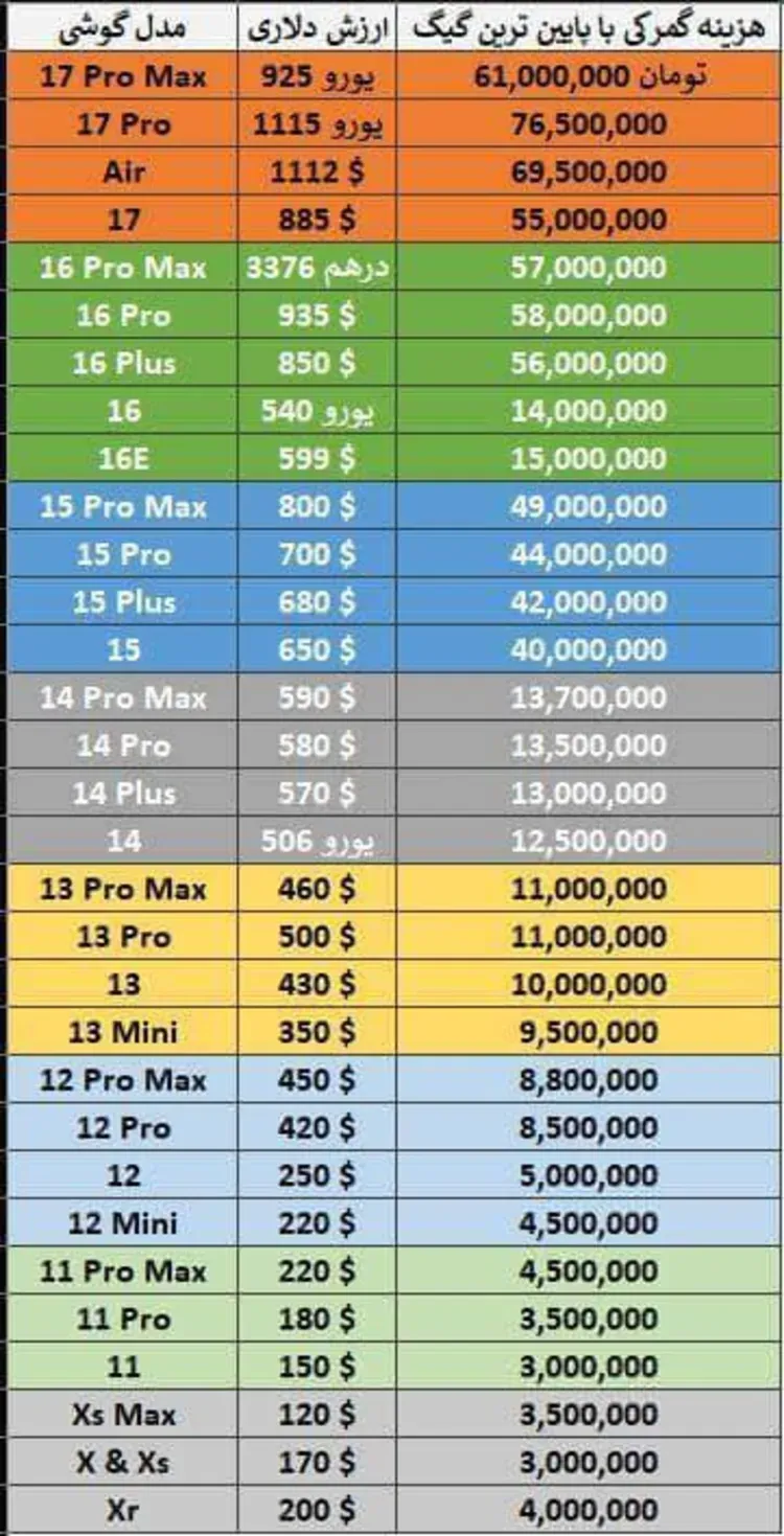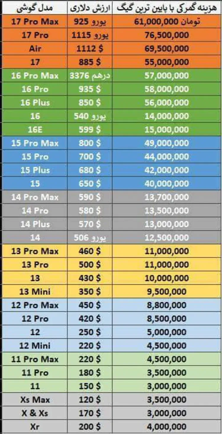 کاهش ناگهانی هزینه رجیستری آیفون 17 پرو مکس در سامانه همتا